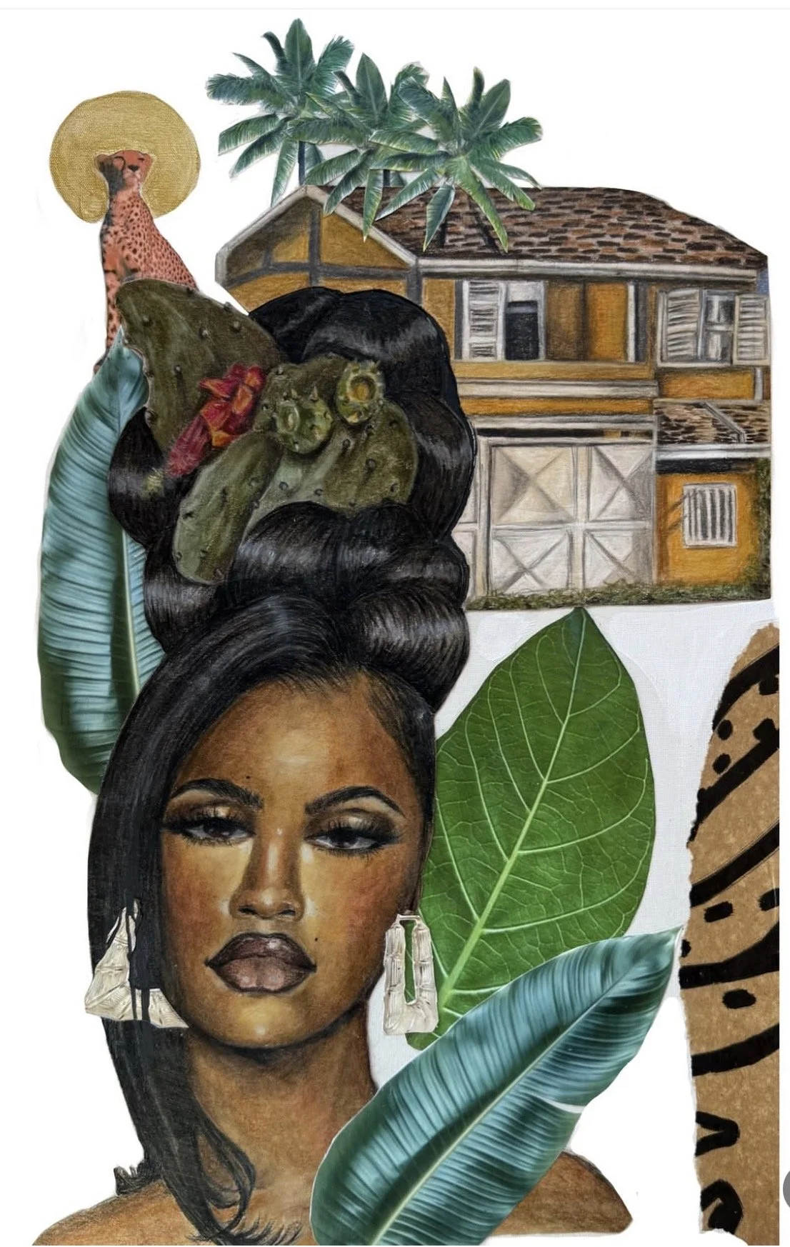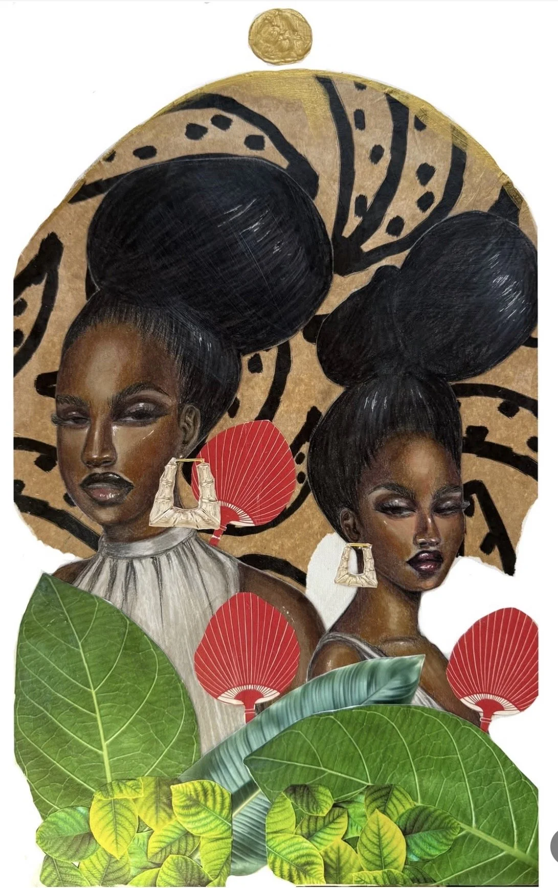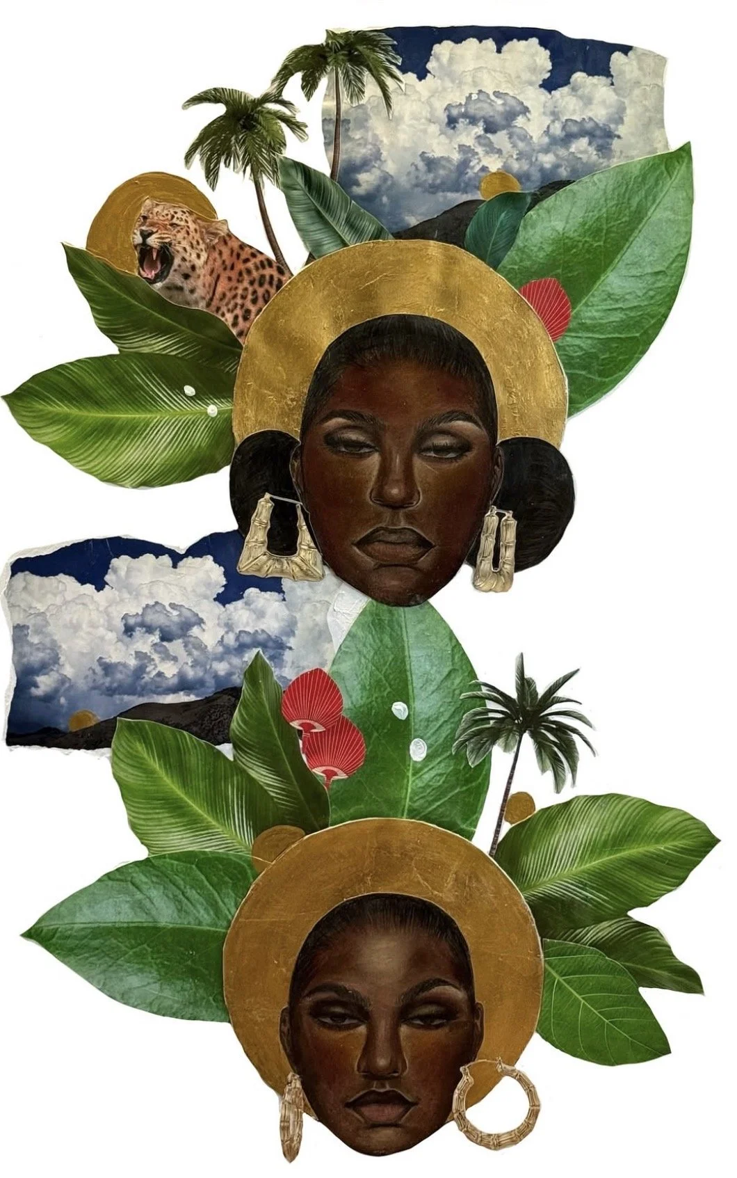 “Seers of the Island” 12x20in Mixed Media Collage on canvas 2025